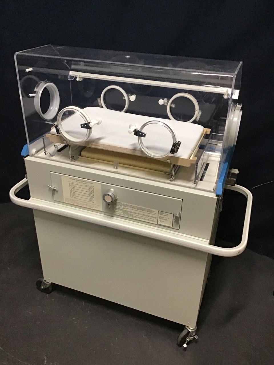 - Infant Incubator: Height: 53 inches Width: 46 inches Length: 22 inches Weight: 161 lbs