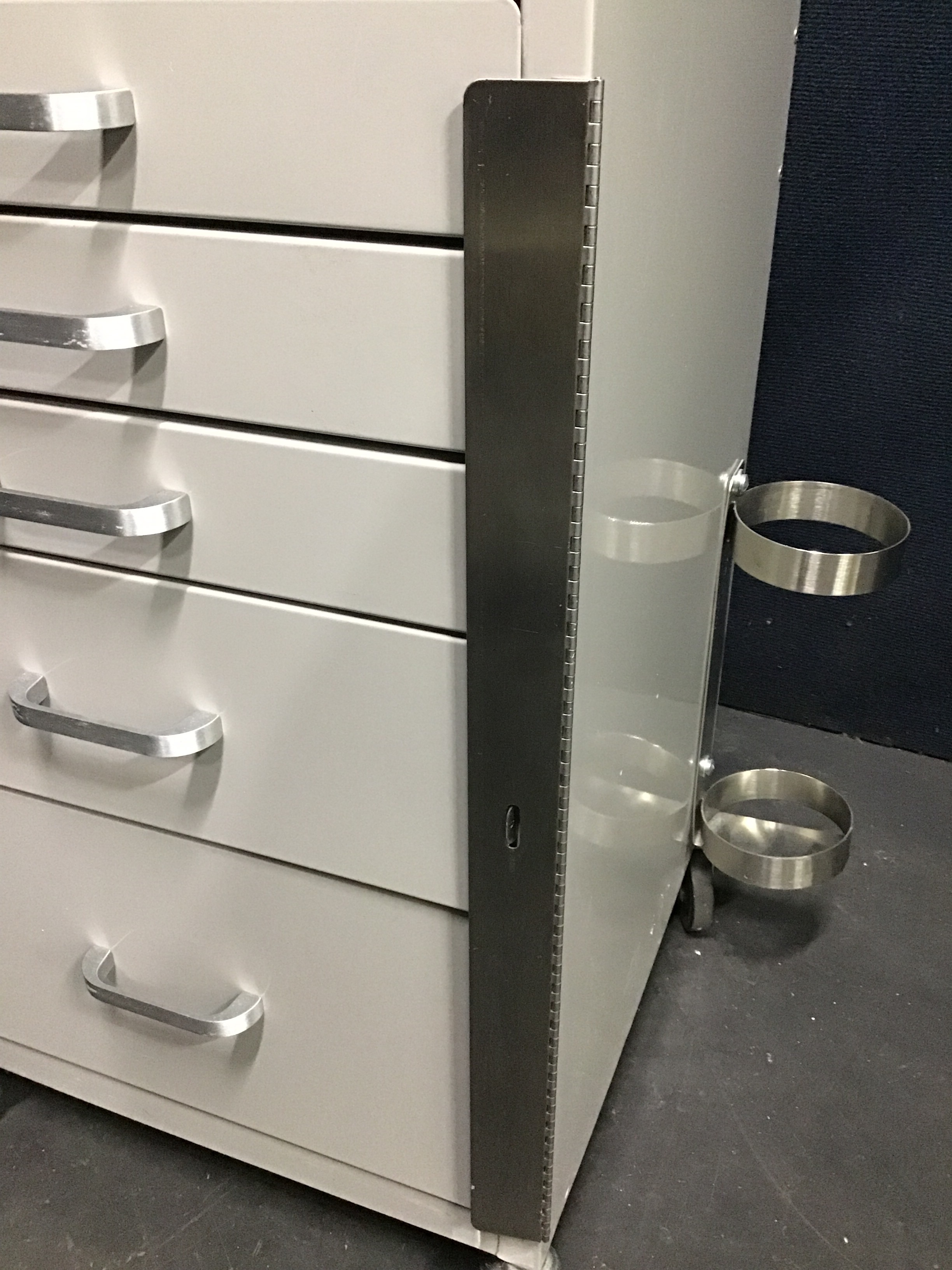 - 5 Drawer Crash Cart: Height: 33.5 inches Width: 18 inches Length: 19 inches Weight: 77 lbs