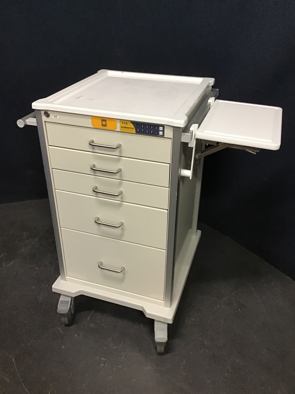 - 5 Drawer Crash/Med Cart: 150 Series Locking medication/punch card cart. (combination unknown)
