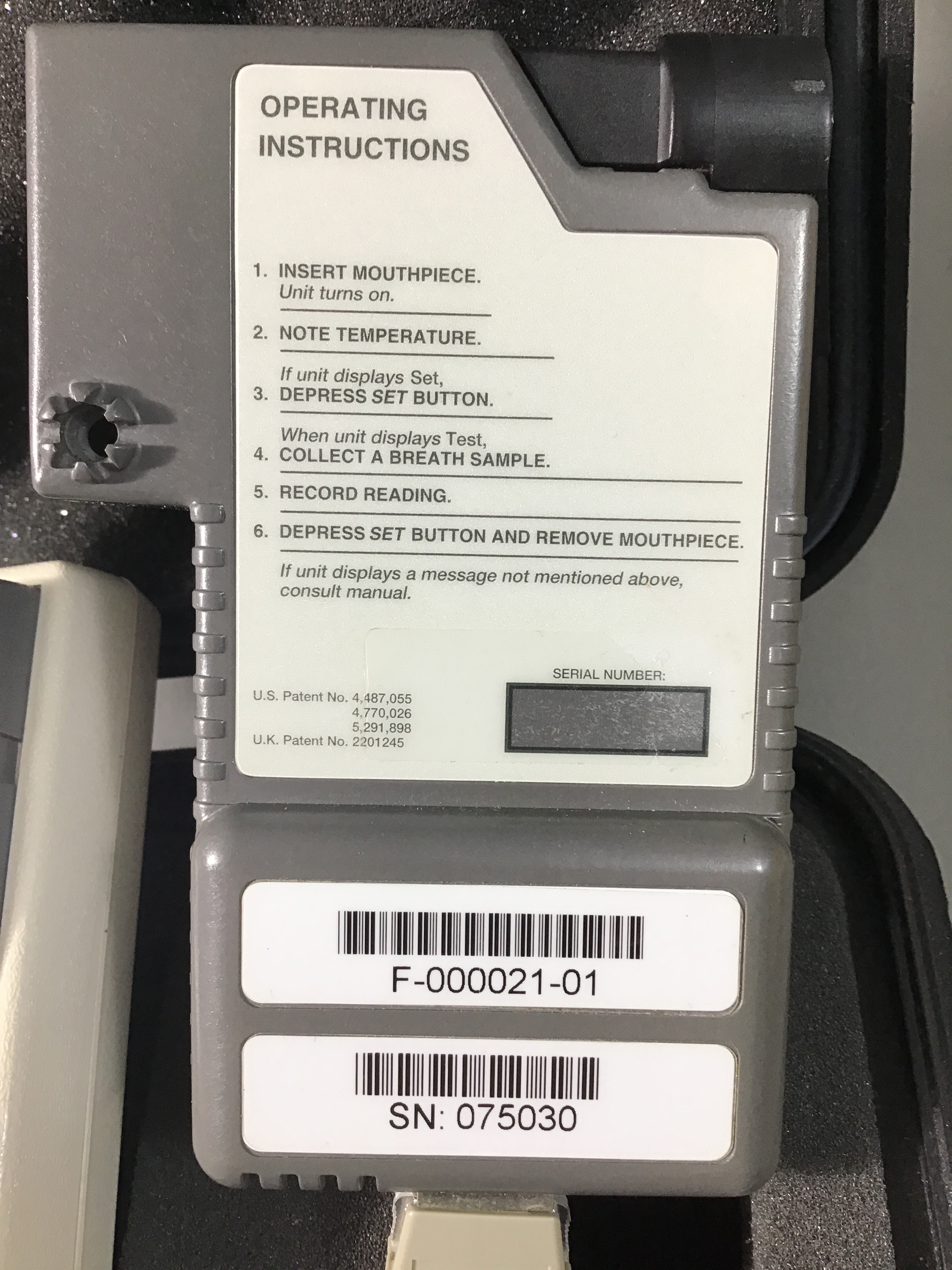 - Breath Alcohol Tester: Height: 6 inches Width: 14 inches Length: 11 inches Weight: 8 lbs