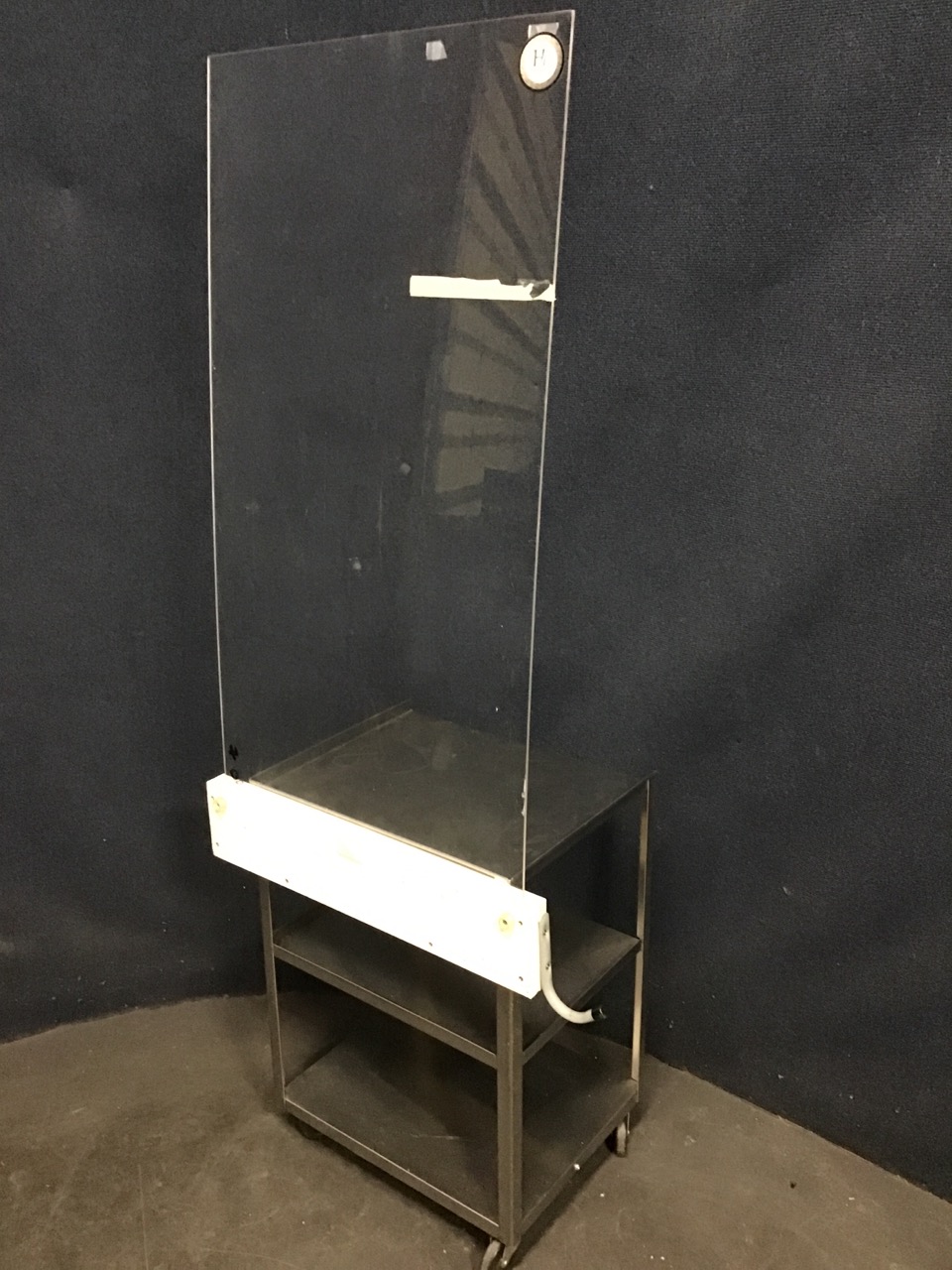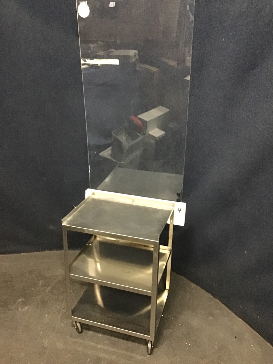- 3 Shelf Stainless Cart: Modified with plexiglass shield for patient sign in. Height: 30 inches Width: 19 inches Length: 17 inches Weight: 17 lbs