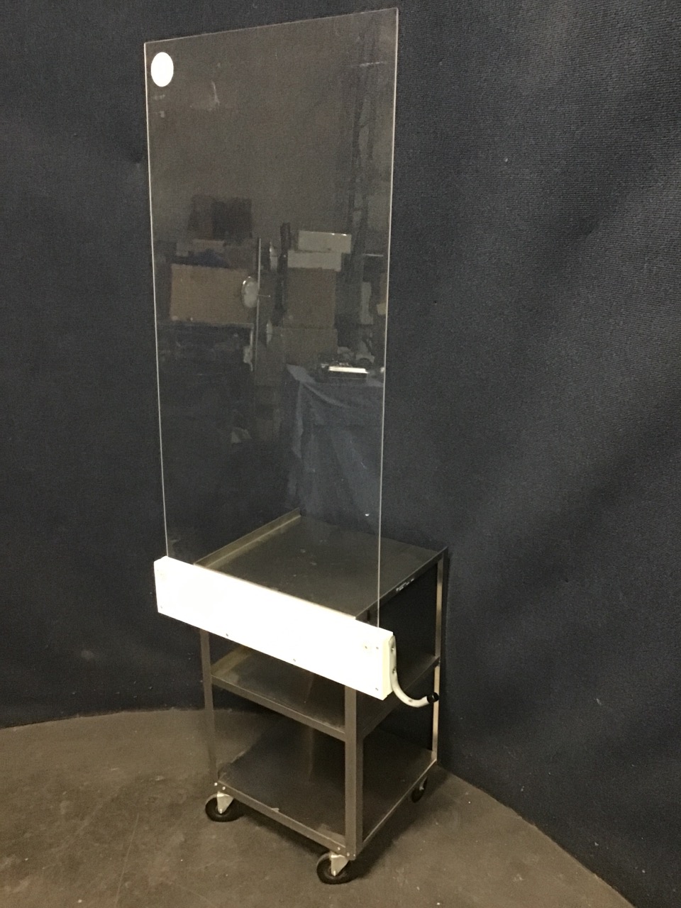 - 3 Shelf Stainless Cart: Modified with plexiglass shield for patient sign in. Height: 30 inches Width: 19 inches Length: 17 inches Weight: 17 lbs