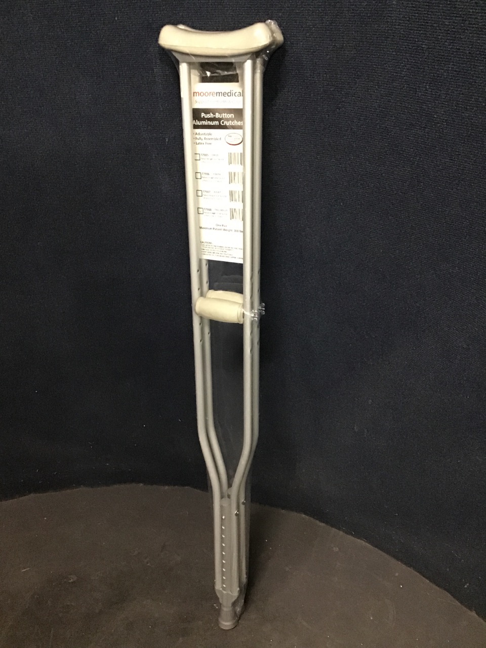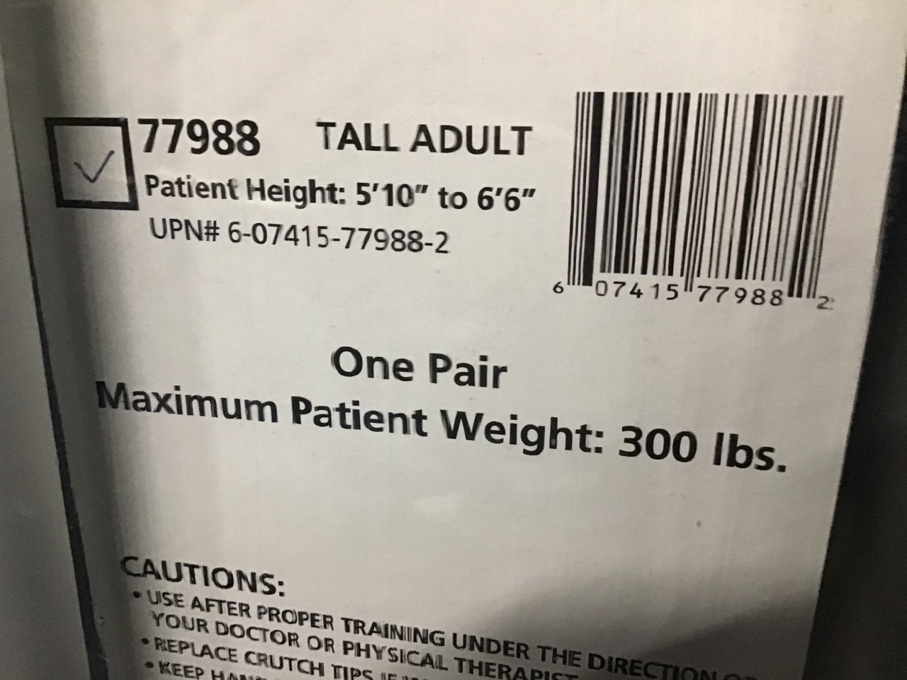 - Crutches: New, never opened. Height: 3 inches Width: 8 inches Length: 53 inches Weight: 4 lbs