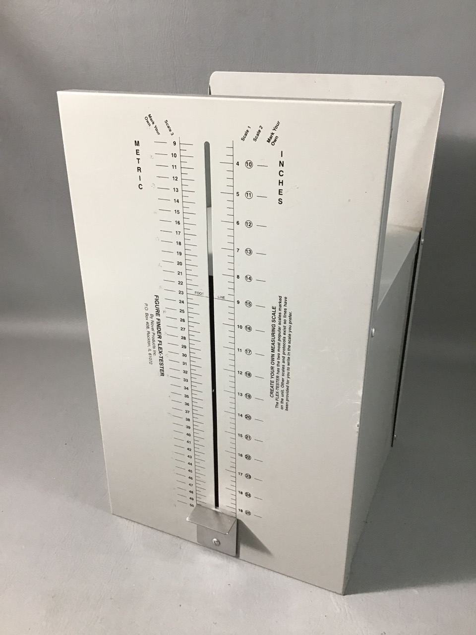 - Figure Finder Flex-Tester: Height: 20 inches Width: 12 inches Length: 12 inches Weight: 11 lbs