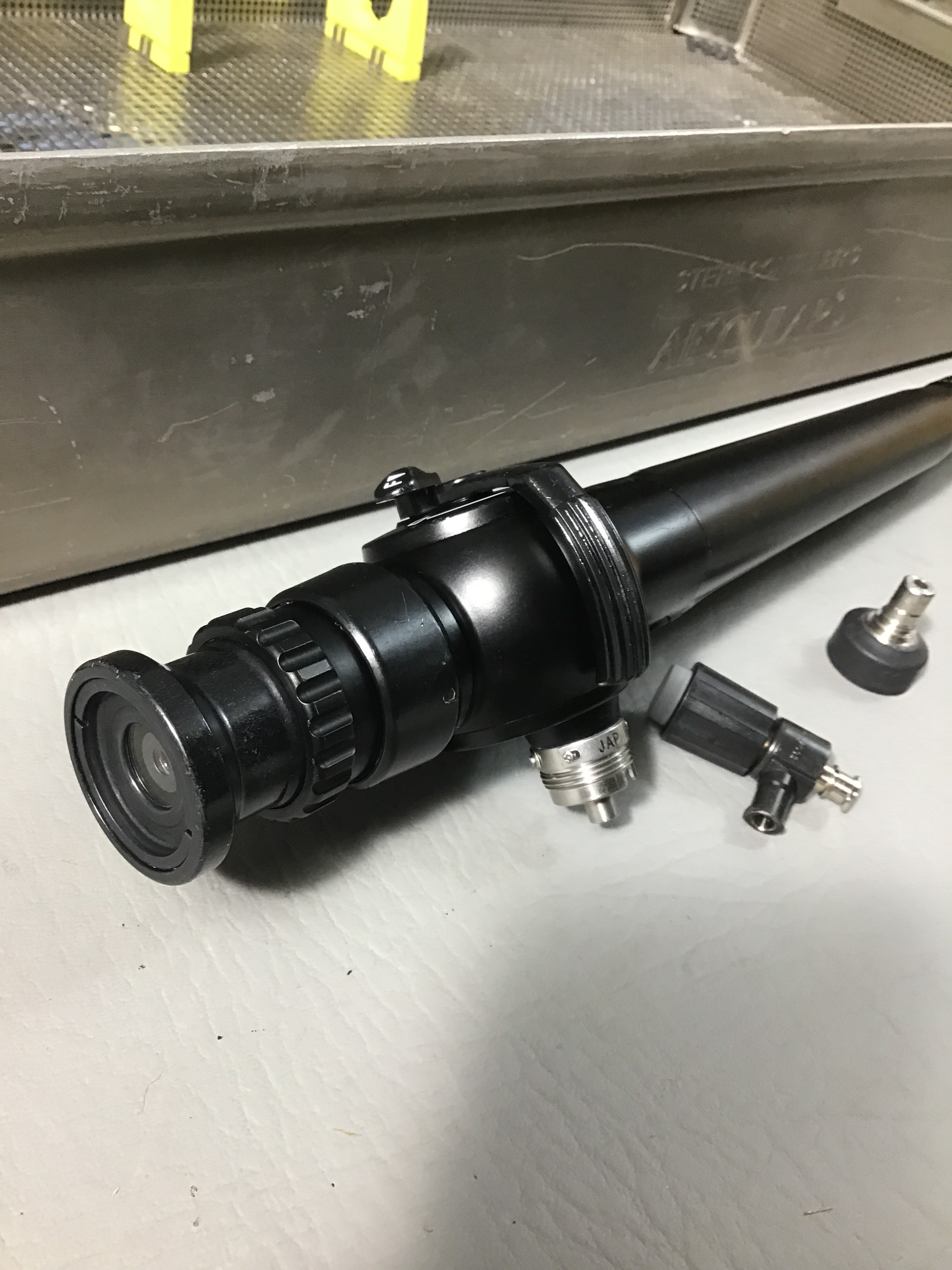 - Cystoscope: includes Aesculap Autoclave Tray model JM489 Height: 5 inches Width: 24 inches Length: 12 inches Weight: 11 lbs