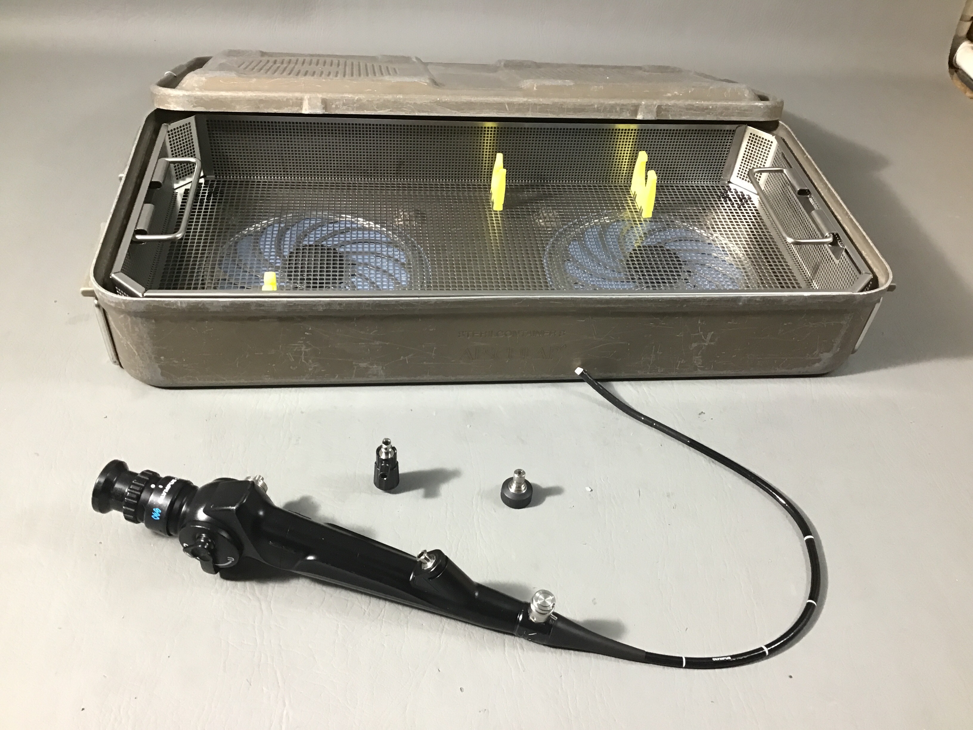 - Cystoscope: includes Aesculap Autoclave Tray model JM489 Height: 5 inches Width: 24 inches Length: 12 inches Weight: 11 lbs