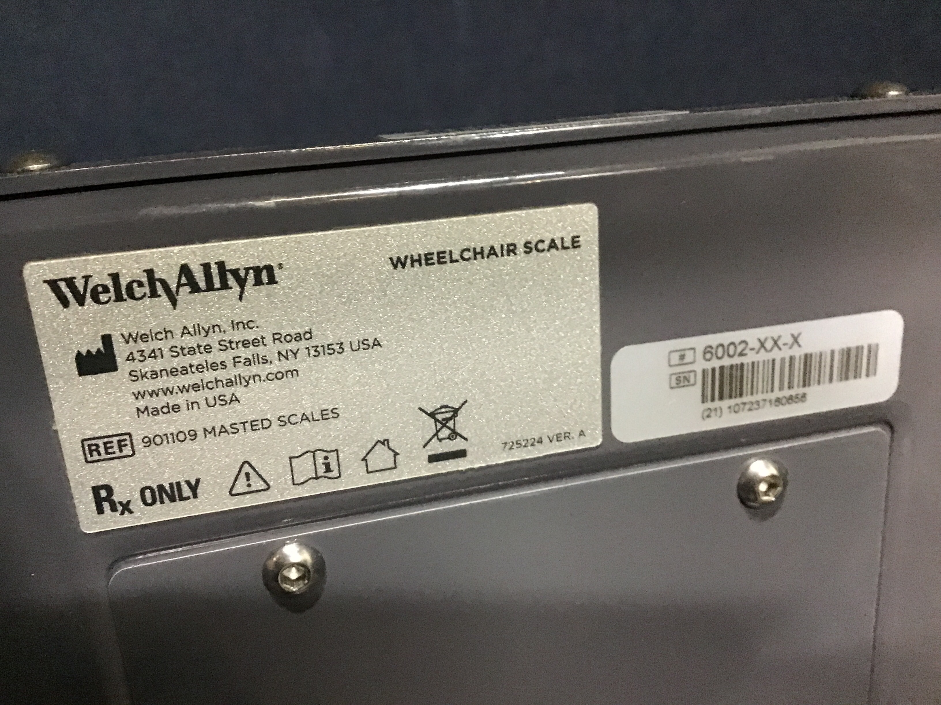 - Digital Wheelchair Scale: Height: 49 inches Width: 24 inches Length: 34 inches Weight: 72 lbs