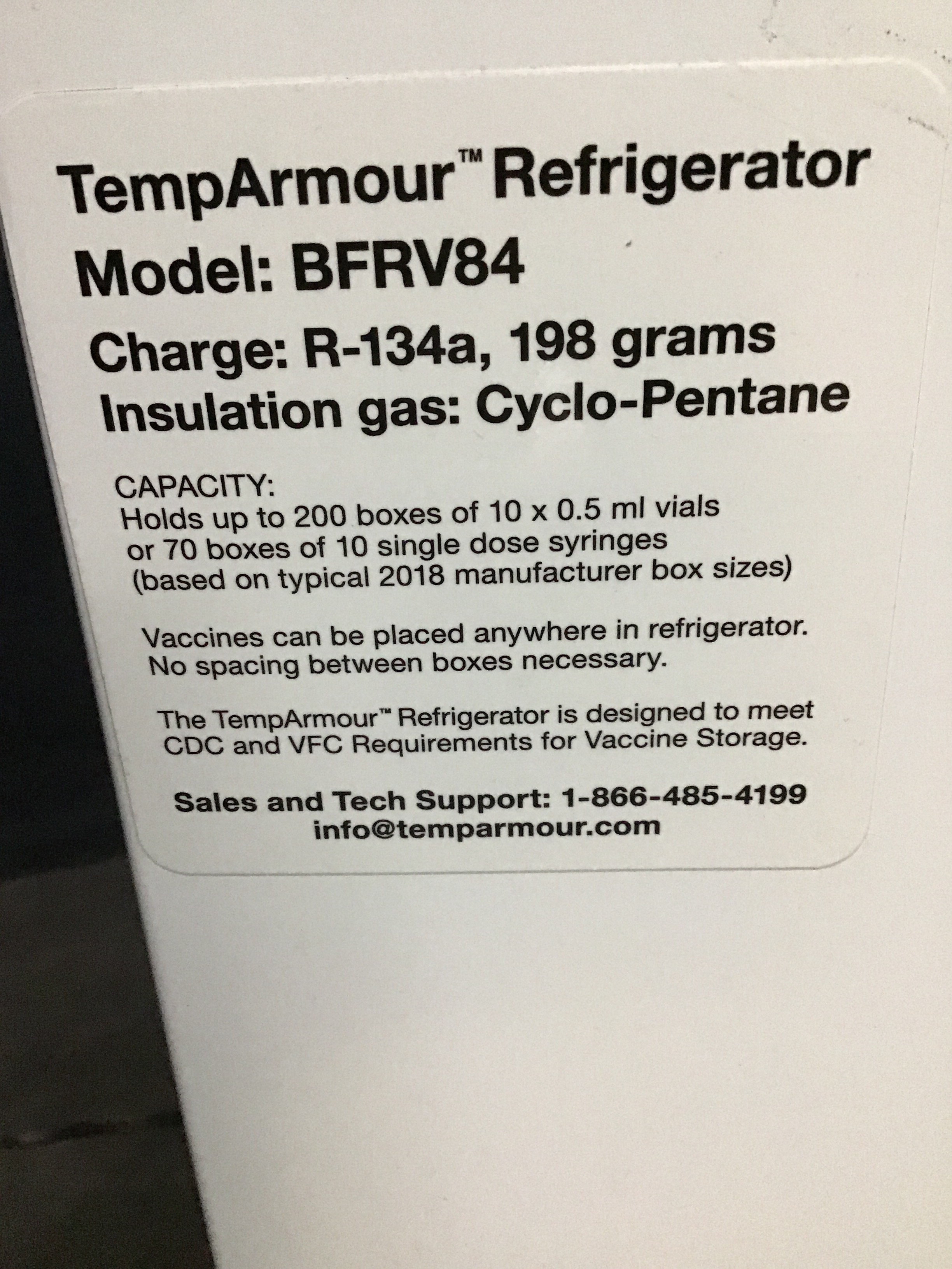 TempStable Refrigeration BFRV84 Vaccine Refrigerator