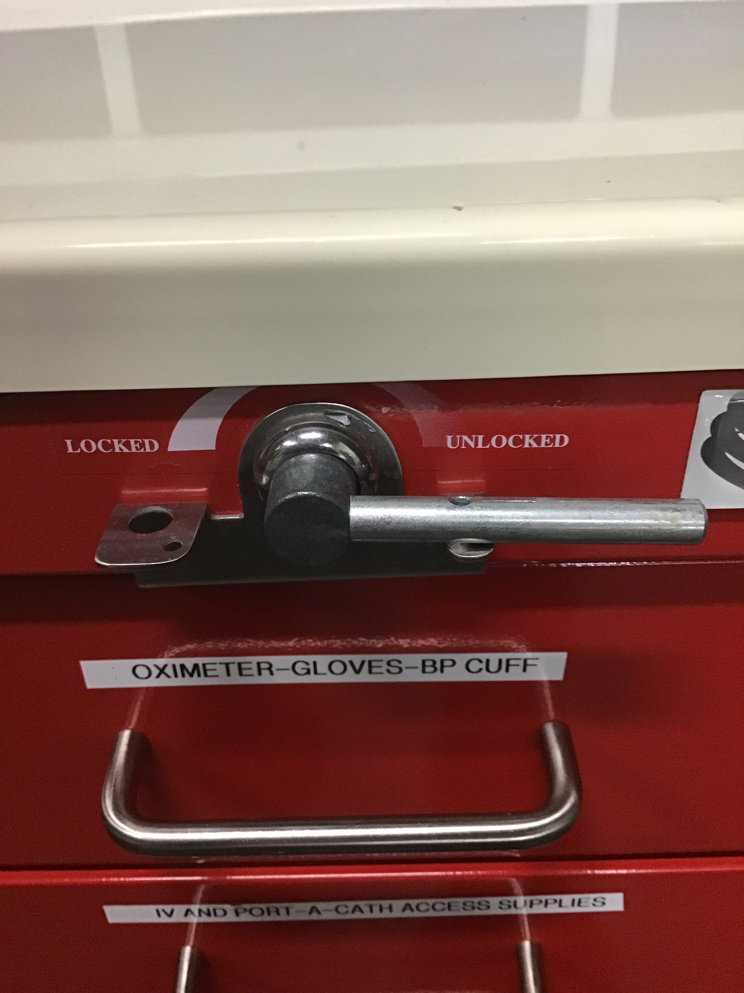 - 6 Drawer Crash Cart: Height: 47 inches Width: 29 inches Length: 24 inches Weight: 117 lbs