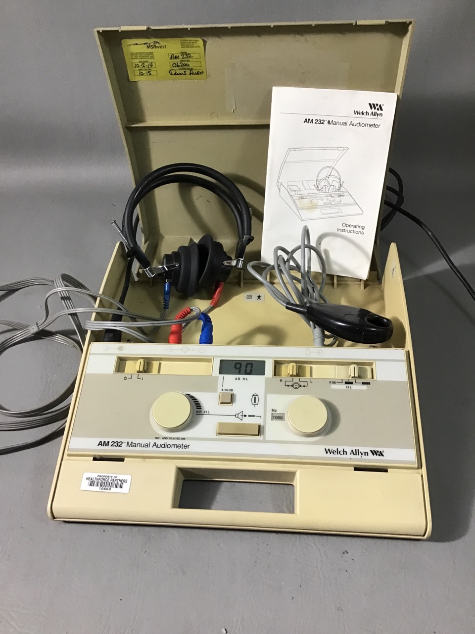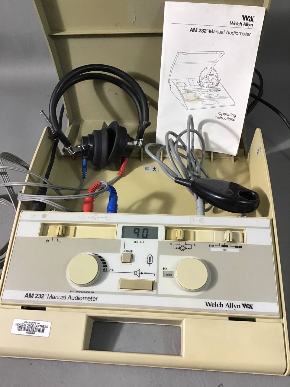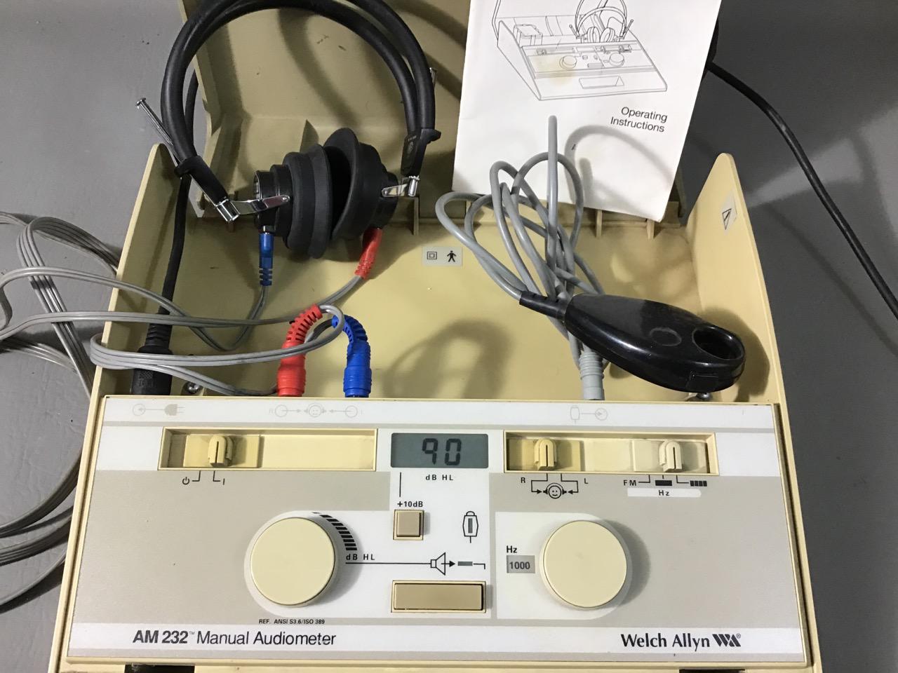 - Manual Audiometer: Height: 4 inches Width: 14 inches Length: 15 inches Weight: 6 lbs