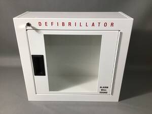 - AED Defibrillator Wall Cabinet: Includes Key and Alarm Height: 15 inches Width: 17 inches Length: 6 inches Weight: 5 lbs