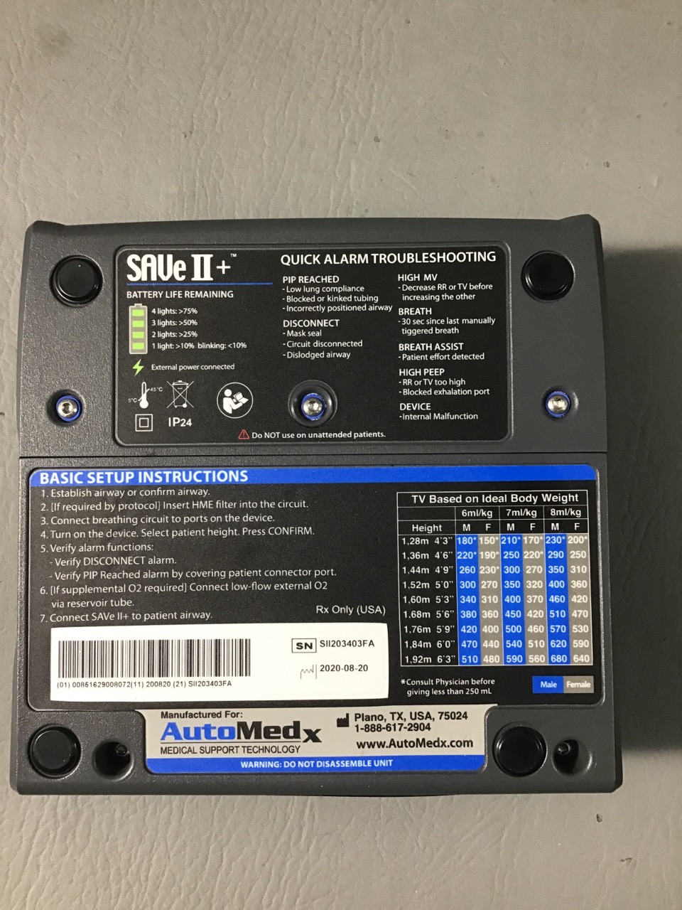 AutoMedx Medical Support Technology SAVe II+ Ventilator