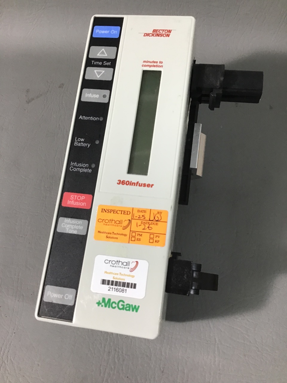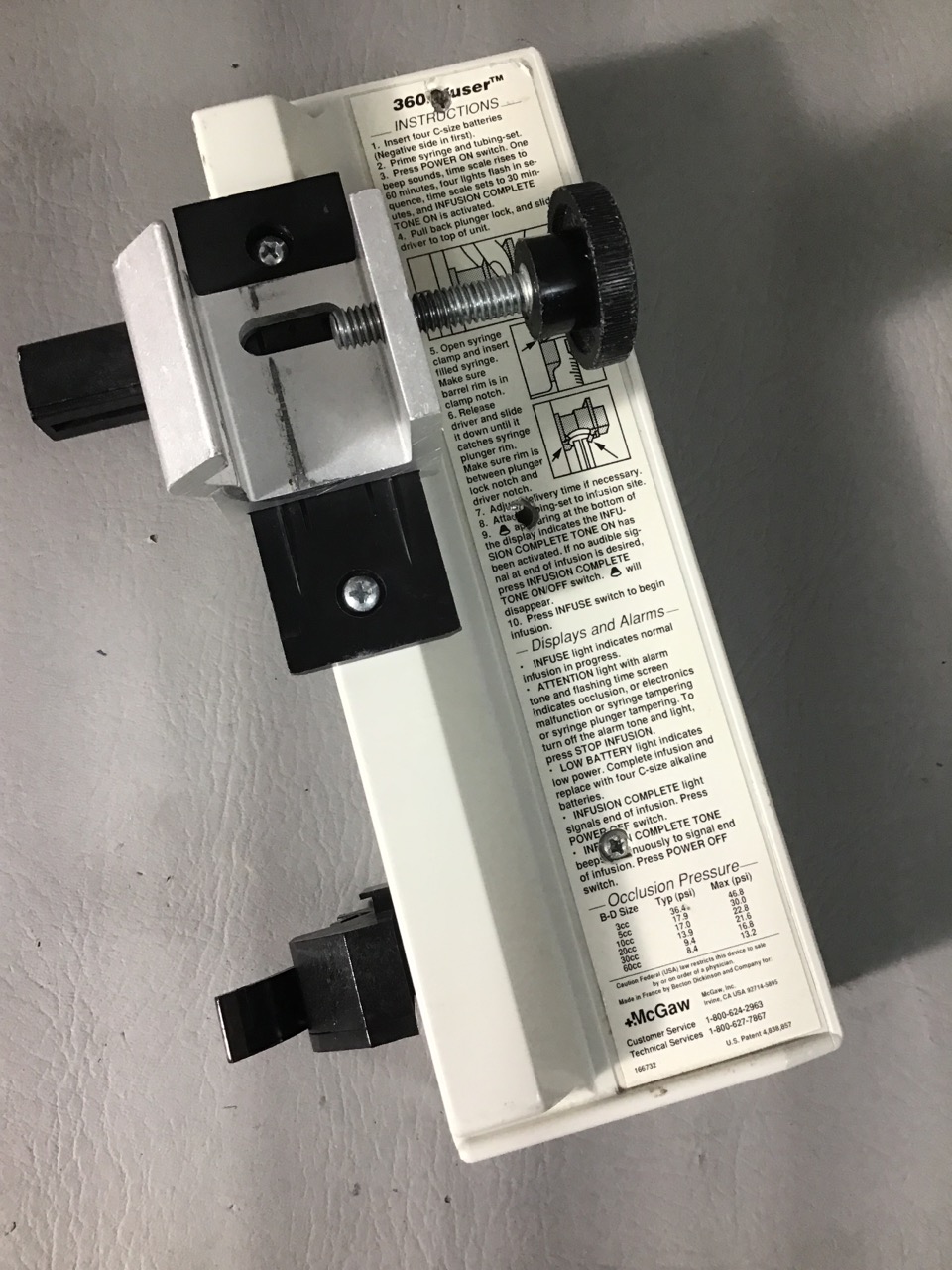 - Infusion Pump: Height: 5 inches Width: 6 inches Length: 9 inches Weight: 2 lbs