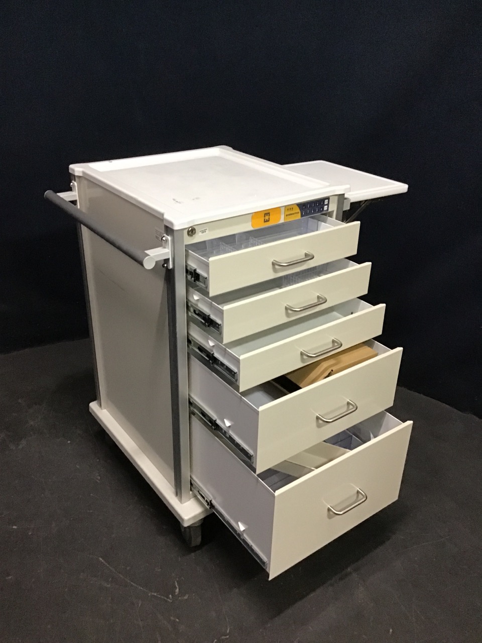- 5 Drawer Crash/Med Cart: 150 Series Locking medication/punch card cart. (combination unknown)