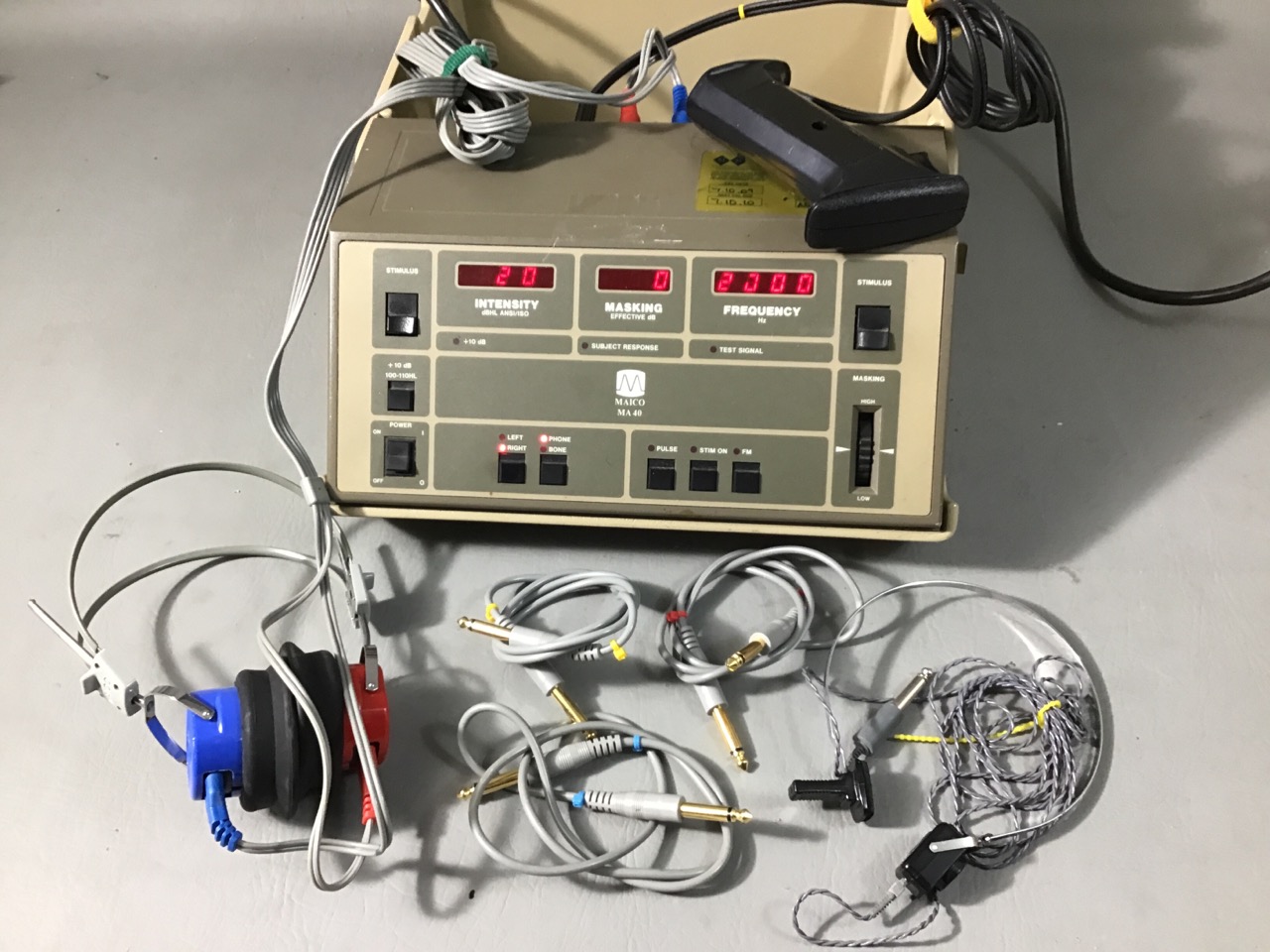 - Audiometer: Height: 6 inches Width: 13 inches Length: 16 inches Weight: 16 lbs