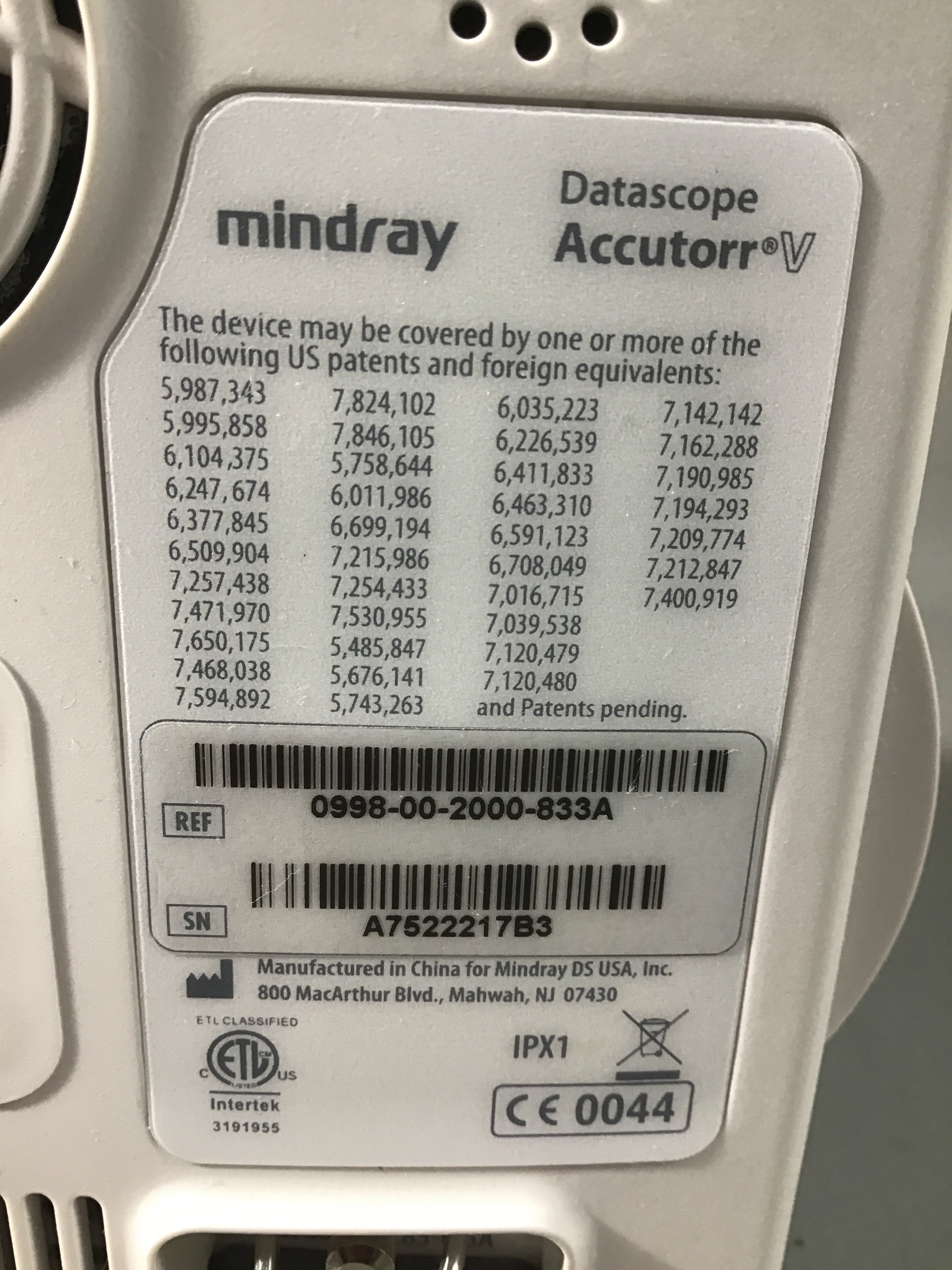 MindRay Datascope Accutorr V Vital Signs Monitor