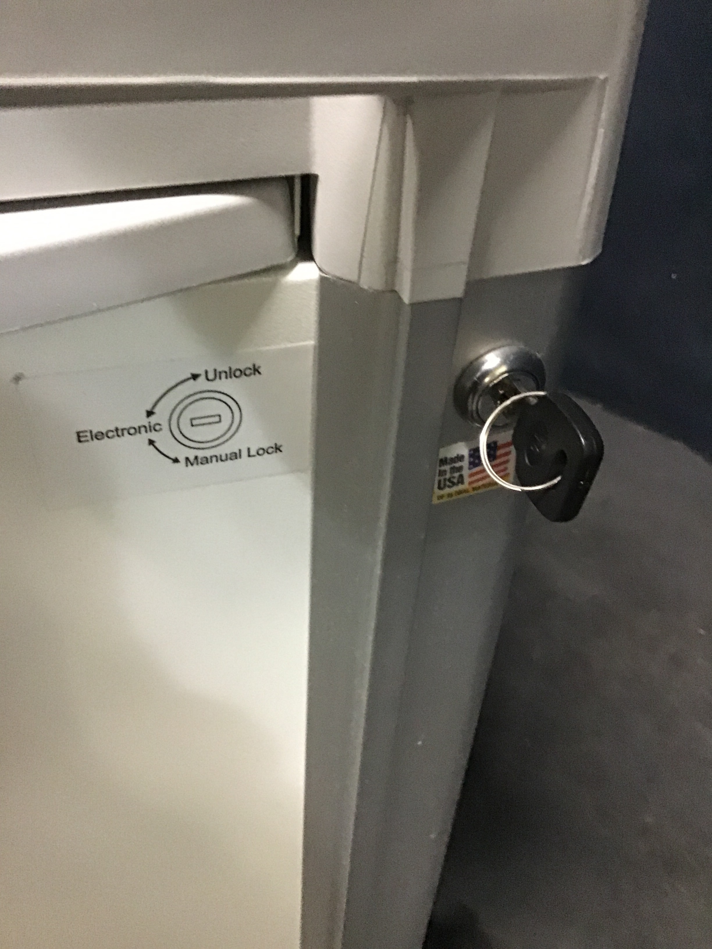 Includes Key Height: 35.5 inches Width: 30 inches Length: 22 inches Weight: 142 lbs - Good Condition Help
