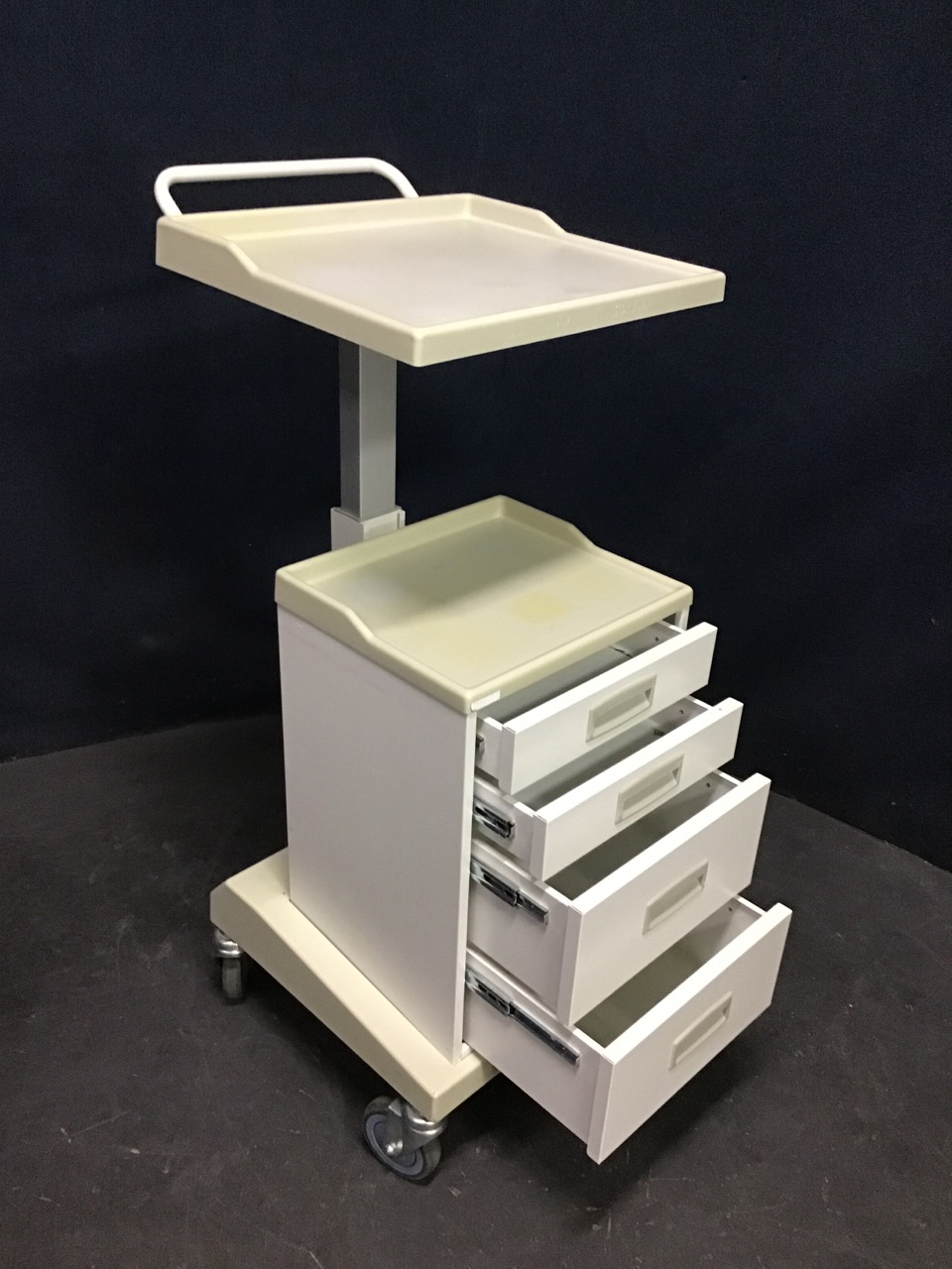 - 4 Drawer Cart with Adjustable Top Tray: Height: 49hi/37low inches Width: 20 inches Length: 22 inches Weight: 90 lbs