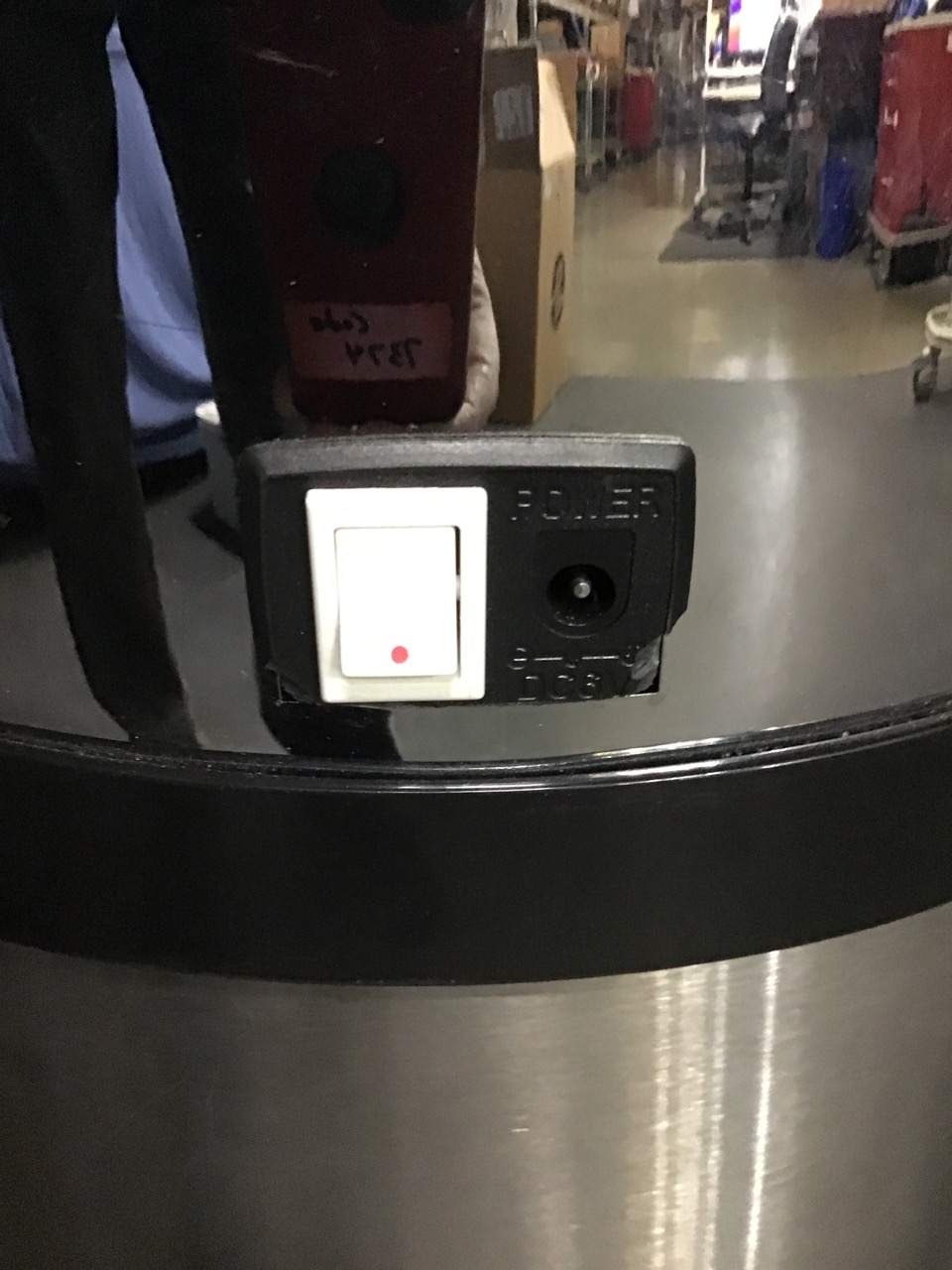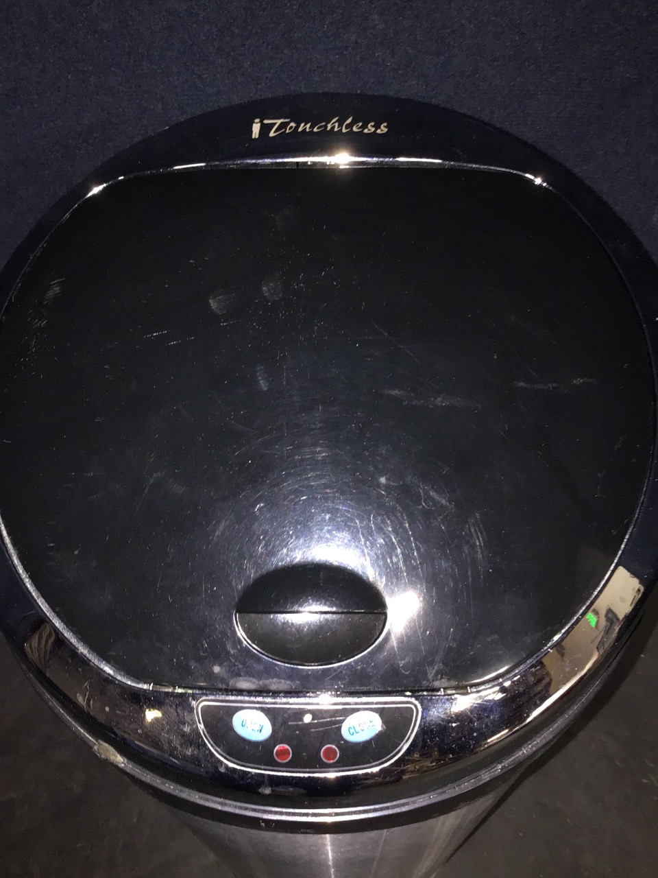 - Touchless Garbage Can: Missing power supply. Height: 30 inches Width: 12 inches Length: 12 inches Weight: 8 lbs