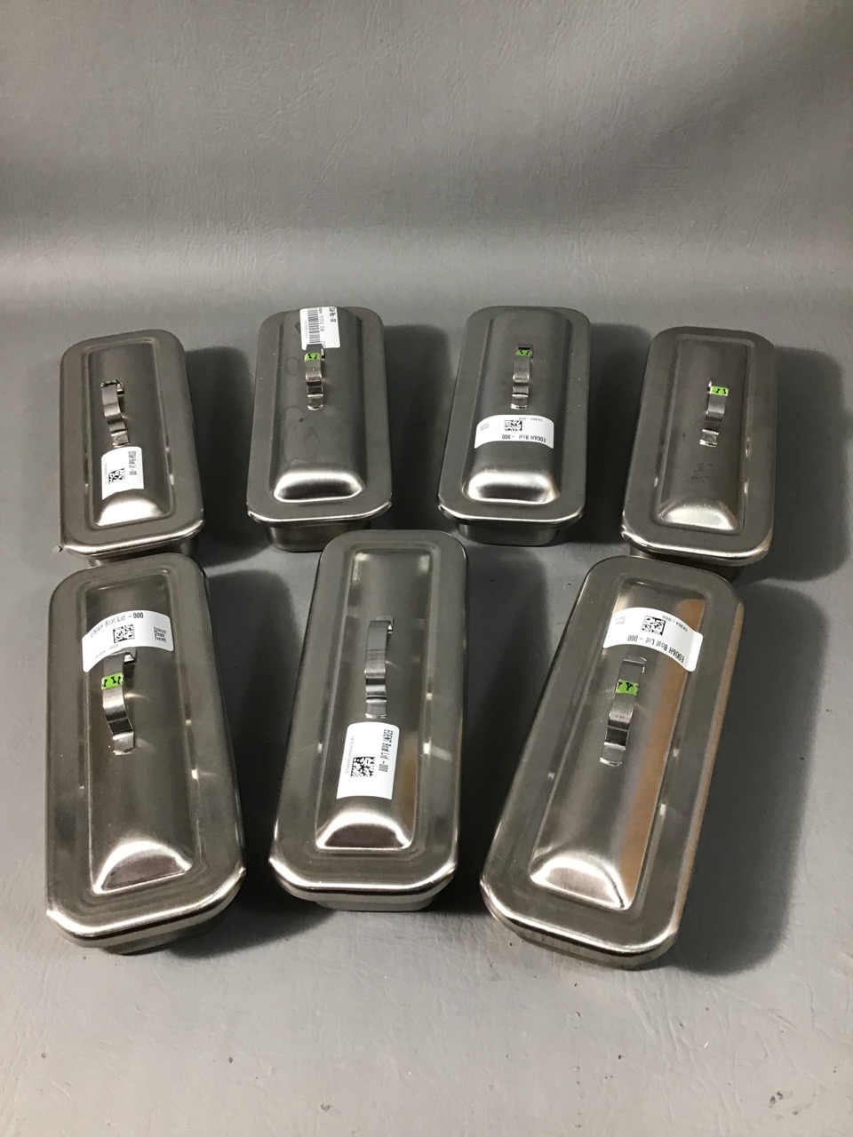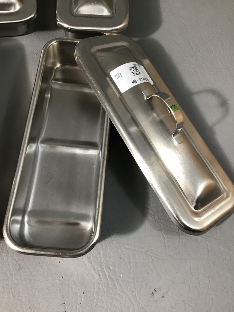 - Stainless Steel Tray with Lid: Lot of 7 Height: 2 inches Width: 3.5 inches Length: 9 inches Weight: 1 lbs