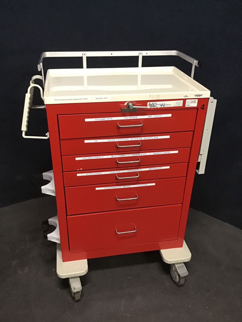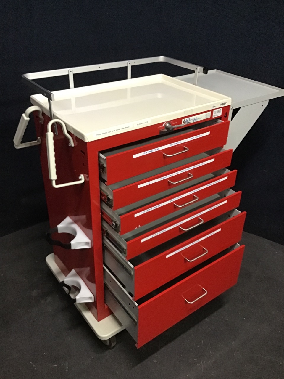 - 6 Drawer Crash Cart: Height: 47 inches Width: 29 inches Length: 24 inches Weight: 117 lbs
